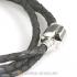 19cm Black Braided Leather Bracelet with Silver Round Clip fit European Beads