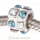 Sterling Silver Beads with Circle Aquamarine Square Clear Austrian Crystal