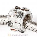 Sterling Silver Beads with Circle Square Clear Austrian Crystal