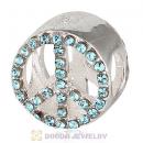 Sterling Silver Peace Button Beads with Blue Zircon Austrian Crystal