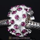Sterling Silver Loose Pave Beads with Fuchsia Austrian Crystal