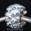 Sterling Silver Loose Pave Beads with Aquamarine Austrian Crystal