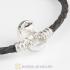 17cm Black Braided Leather Bracelet 925 Silver Love of My Life Round Clip with Heart White CZ Stone