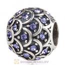 Sterling Silver Sparkling Fish Scale Bead with Violet Austrian Crystal