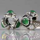 European Style Silver Beads with 3 Green Eye CZ Stone