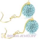 10mm Cyan Czech Crystal Ball Gold Plated Silver Dangle Earrings Wholesale