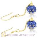 8mm Blue-White Czech Crystal Ball Gold Plated Silver Dangle Earrings Wholesale