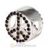 Sterling Silver Peace Button Beads with Jet Austrian Crystal