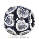 925 Sterling Silver Symbol of Love Dangle Charm with Clear Zircon Stone