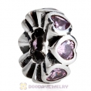 925 Sterling Silver Sweet Heart Bead with Lt Rose Crystal Flower Charm