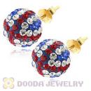 10mm Czech Crystal Union Jack Bead Gold Plated Silver Stud Earrings Wholesale