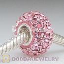 Pink Frosted Glass Silver Core Bead With Austrian Crystal For European Bracelet