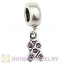 Sterling Silver Ribbon Lung Cancer Bead with Violet Austrian Crystal