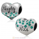 925 Sterling Silver Nice or Naughty Heart Bead with Emerald Crystal