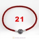 21cm Red Braided Leather Bracelet 925 Silver Love of My Life Round Clip with Heart White CZ Stone