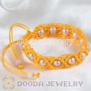 Hand Knitted Adjustable Yellow handmade Inspired Bracelet with Nature Freshwater Pearl