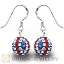 10mm Czech Crystal Flag Of USA Bead Sterling Silver Hook Earrings Wholesale