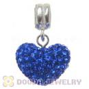 Sterling Silver European Dangle Blue Austrian Crystal Heart Charm Beads