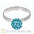 8mm Cyan Czech Crystal Ball 925 Sterling Silver Rings Wholesale