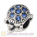 925 Sterling Silver European Turtle Charm Bead With Pave Sapphire Austrian Crystal