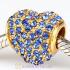 Gold Plated Sterling Pave Heart with Blue Zircon Austrian Crystal Charm