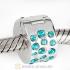 Sterling Silver Glimmer Clip Beads with Aquamarine Austrian Crystal European Style
