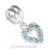 Sterling Silver Heart Dangle Charms with Blue Zircon Austrian Crystal