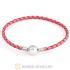 20cm Pink Braided Leather Bracelet with Silver Round Clip fit European Beads