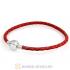 19cm Red Braided Leather Bracelet with Silver Round Clip fit European Beads