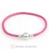 21cm Pink Slippy Leather Bracelet with Silver Round Clip fit European Beads