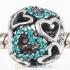 Sterling Silver love Hearts Charm with Aquamarine Heart Austrian Crystal