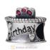 Sterling Silver Happy Birthday Cake Charm Beads with Light Siam Austrian Crystal Wholesale