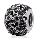 Fluttering Butterflies Charm 925 Sterling Silver Bead with Jet Pave Australian Crystal