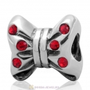 925 Sterling Silver Minnie Bow knot Charm Bead with Lt Siam Crystal