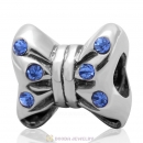 925 Sterling Silver Minnie Bow knot Charm Bead with Sapphire Crystal