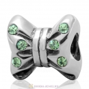 925 Sterling Silver Minnie Bow knot Charm Bead with Peridot Crystal