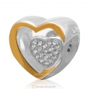 Joined Together with Clear CZ and Gold Plated 925 Sterling Silver Heart Bead