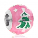 925 Sterling Silver Xmas Tree Bead with Pink Enamel