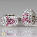 Sterling Silver Swirl Beads with Pink CZ Stone fit European Largehole Jewelry Jewelry