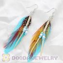 Cheap Tibetan Jaderic Indian Styles Blue Feather Earrings Adorned With Mix Bead
