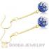 8mm Blue Czech Crystal Ball Gold Plated Silver Dangle Earrings Wholesale