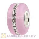 Pink Frosted Glass Silver Core Bead With Austrian Crystal For European Bracelet