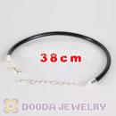 38cm black PU Leather chain, silver plated needle clasp fit Charm Jewelry Bracelet